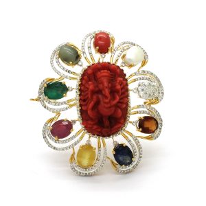 Diamond Coral Ganesh Brooch (DLK-25219)