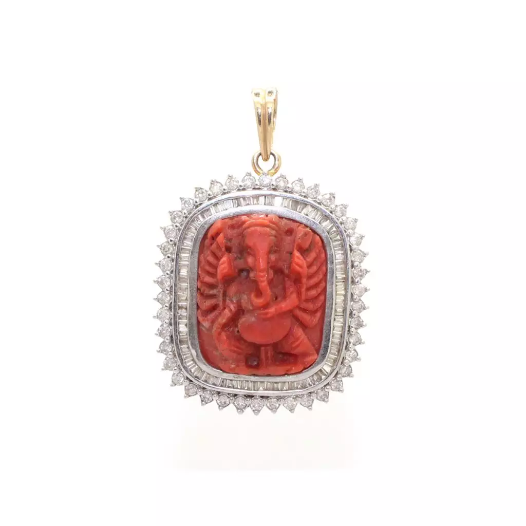 Diamond Coral Ganesh Locket
