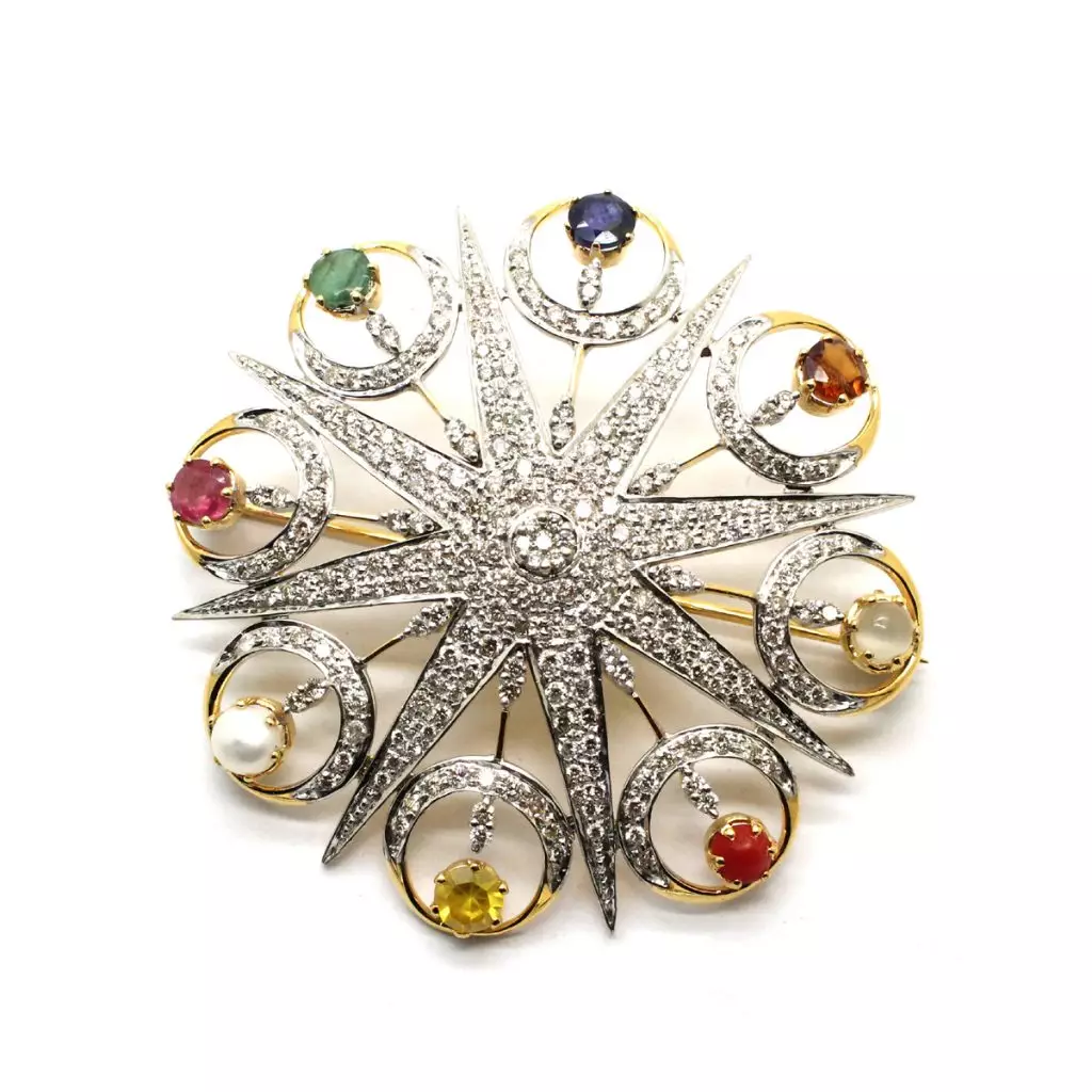 Diamond Coral Nawaratna Brooch