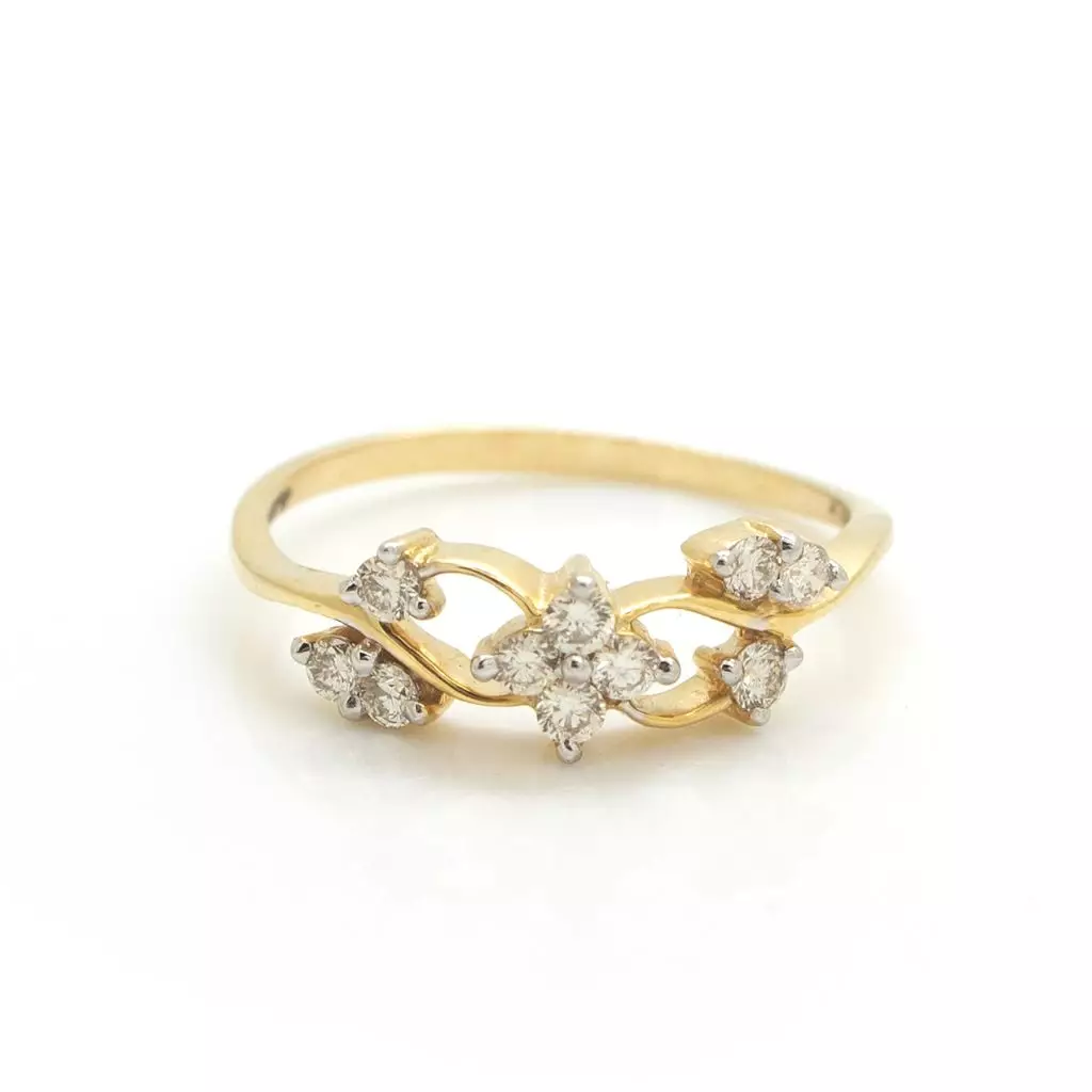 - 14K Diamond Coral Nawaratna Ring|Diamond Ring