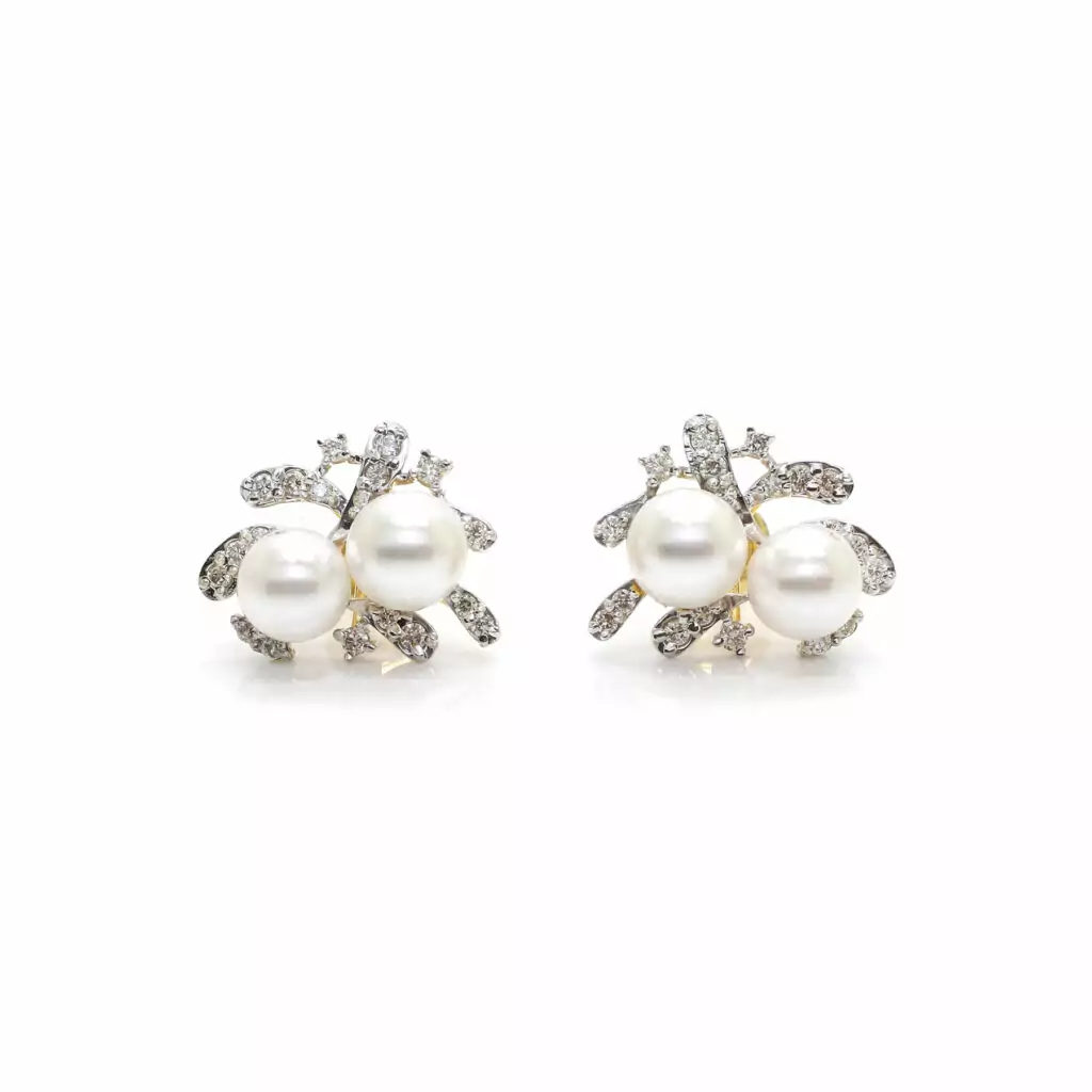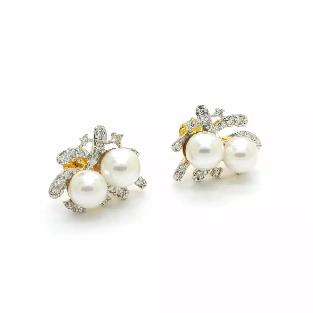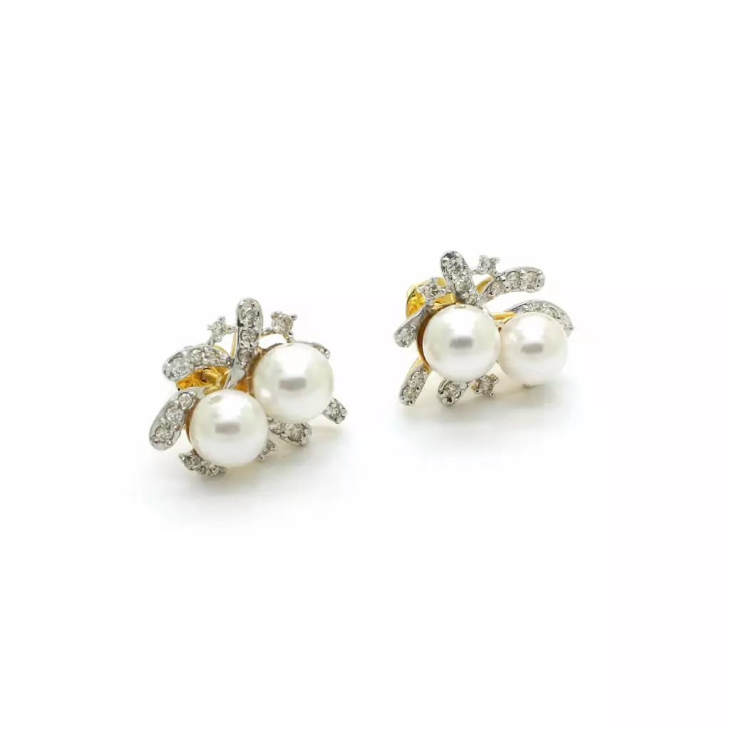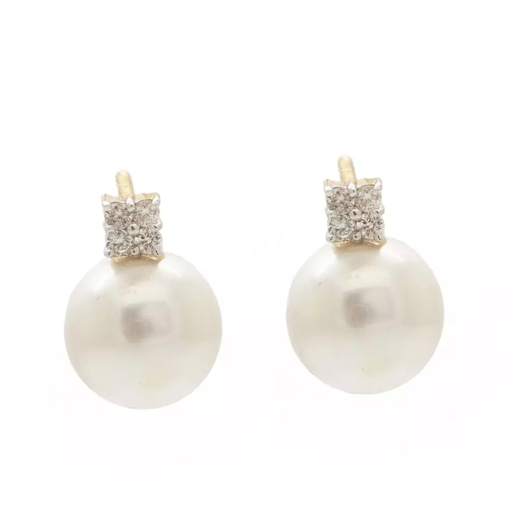 - 14K Gold Diamond Pearl Earring|Top